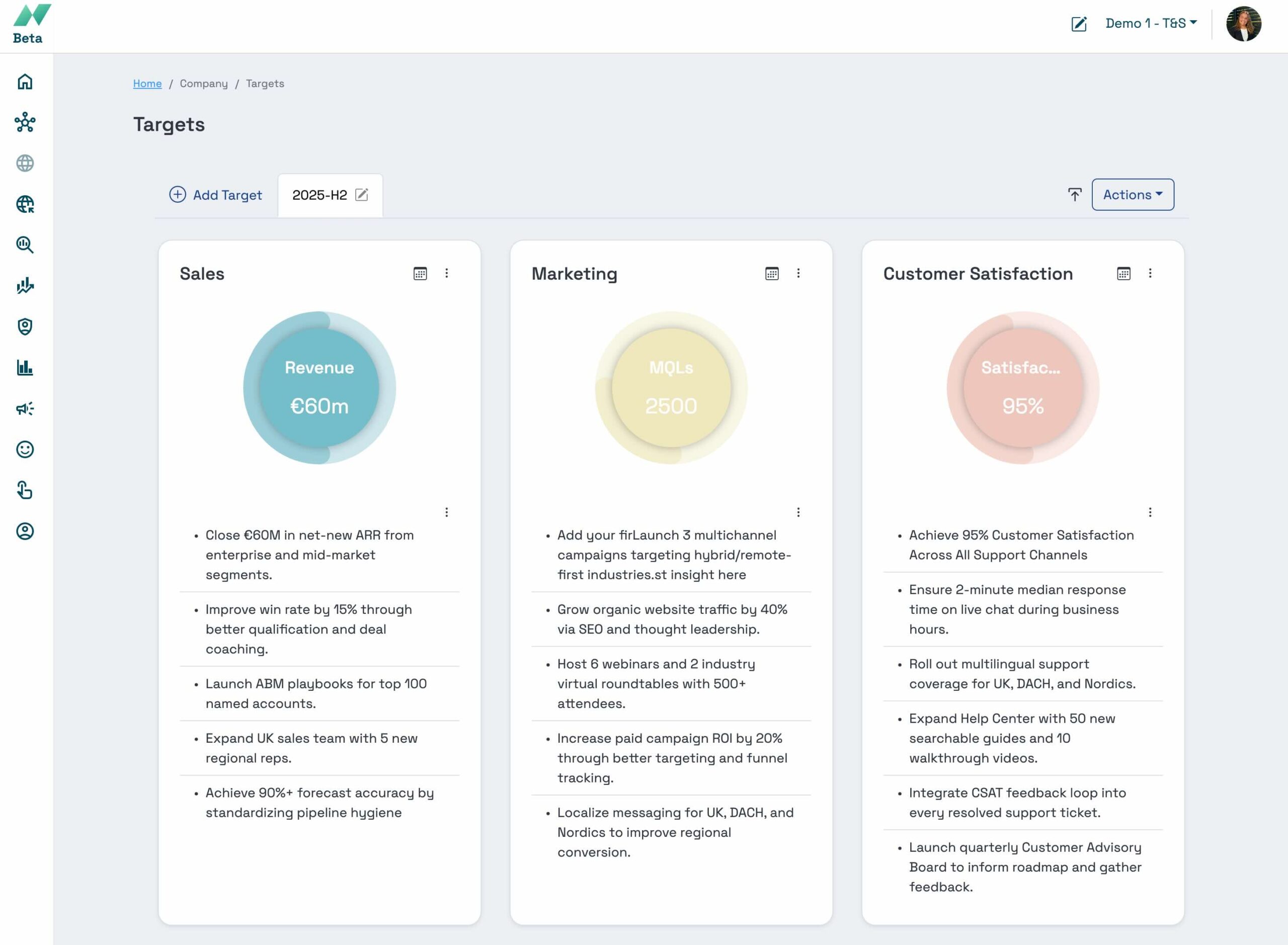 With real-time visibility into progress, everyone from marketing to sales, product, and customer success can stay aligned, make data-driven decisions, and work together to achieve your strategic objectives.
