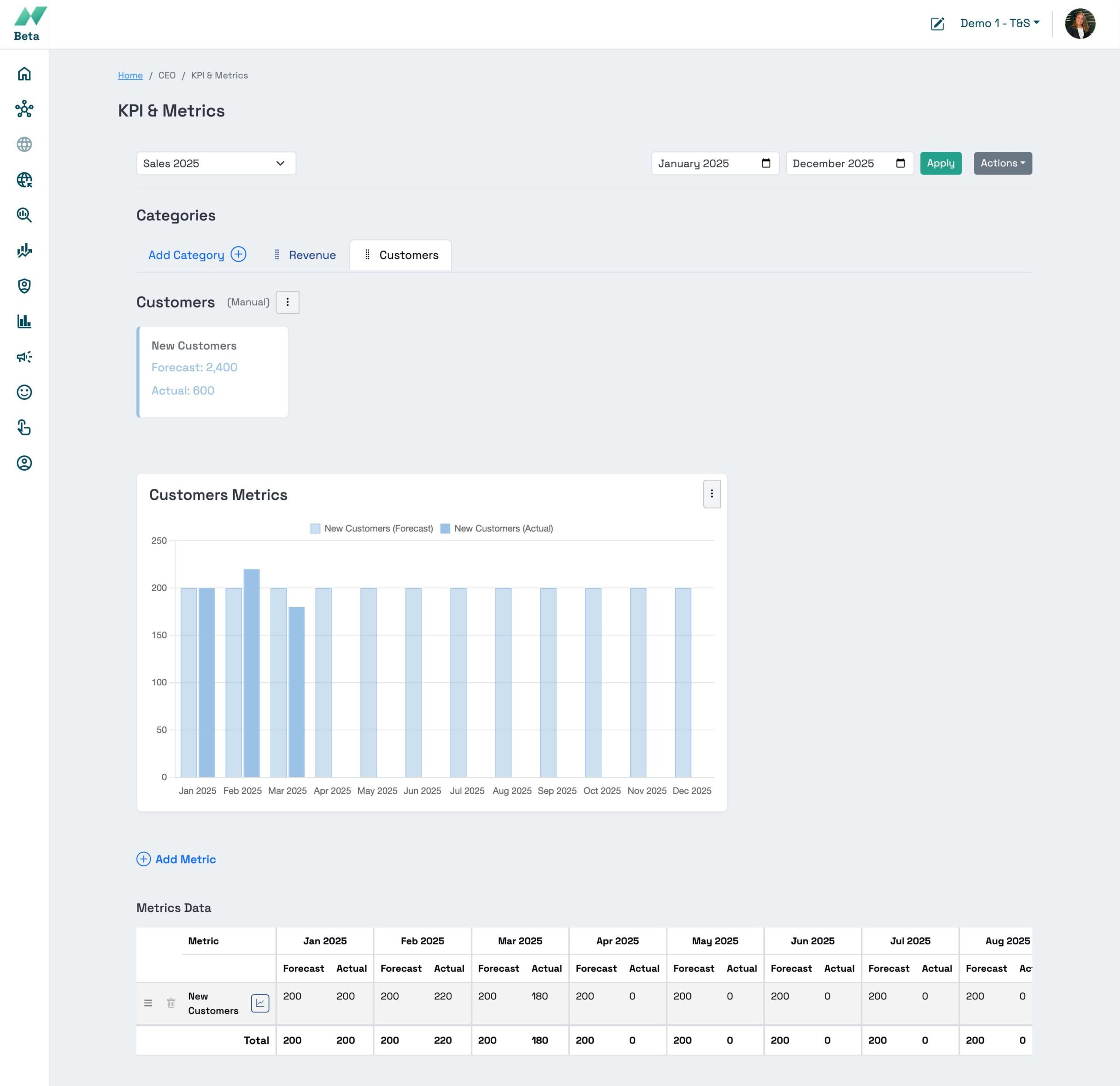 KPI and Metrics Application
