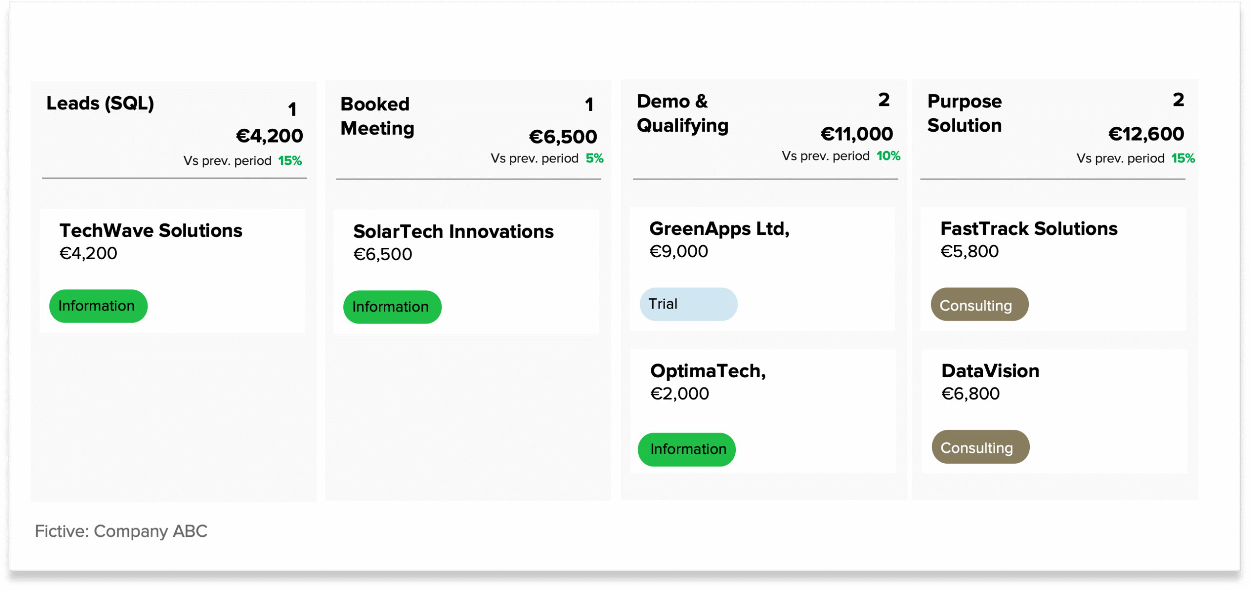 Ensure transparency and accountability by tracking the progress of every opportunity in your pipeline. From initial lead capture to final conversion, the tool allows for detailed tracking of each stage, ensuring that no opportunity slips through the cracks. By identifying potential bottlenecks, areas of weakness, or stalled deals, you can proactively address challenges and keep your sales team focused on the most promising opportunities, driving higher conversion rates and improving overall sales performance.