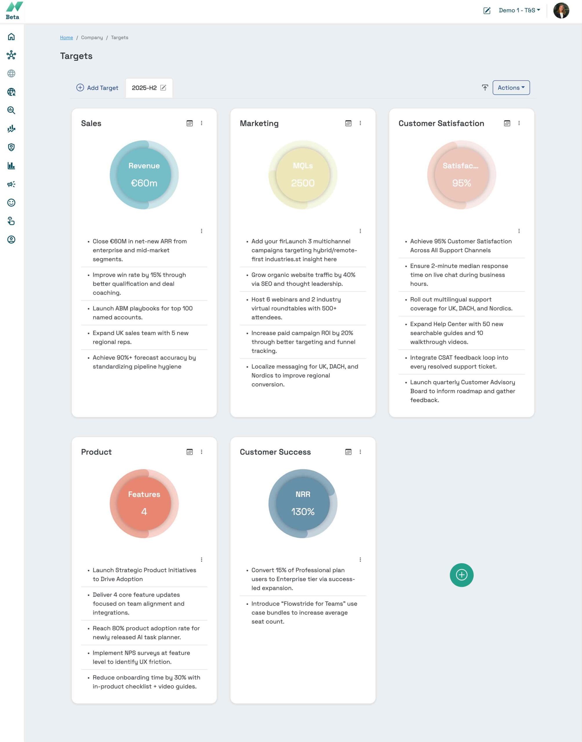 In fast-growing startups and scale-ups, aligning on key targets is essential for driving success. Whether it’s revenue growth, customer satisfaction, or product development, our platform empowers you to set clear, measurable goals and seamlessly communicate them across teams.
